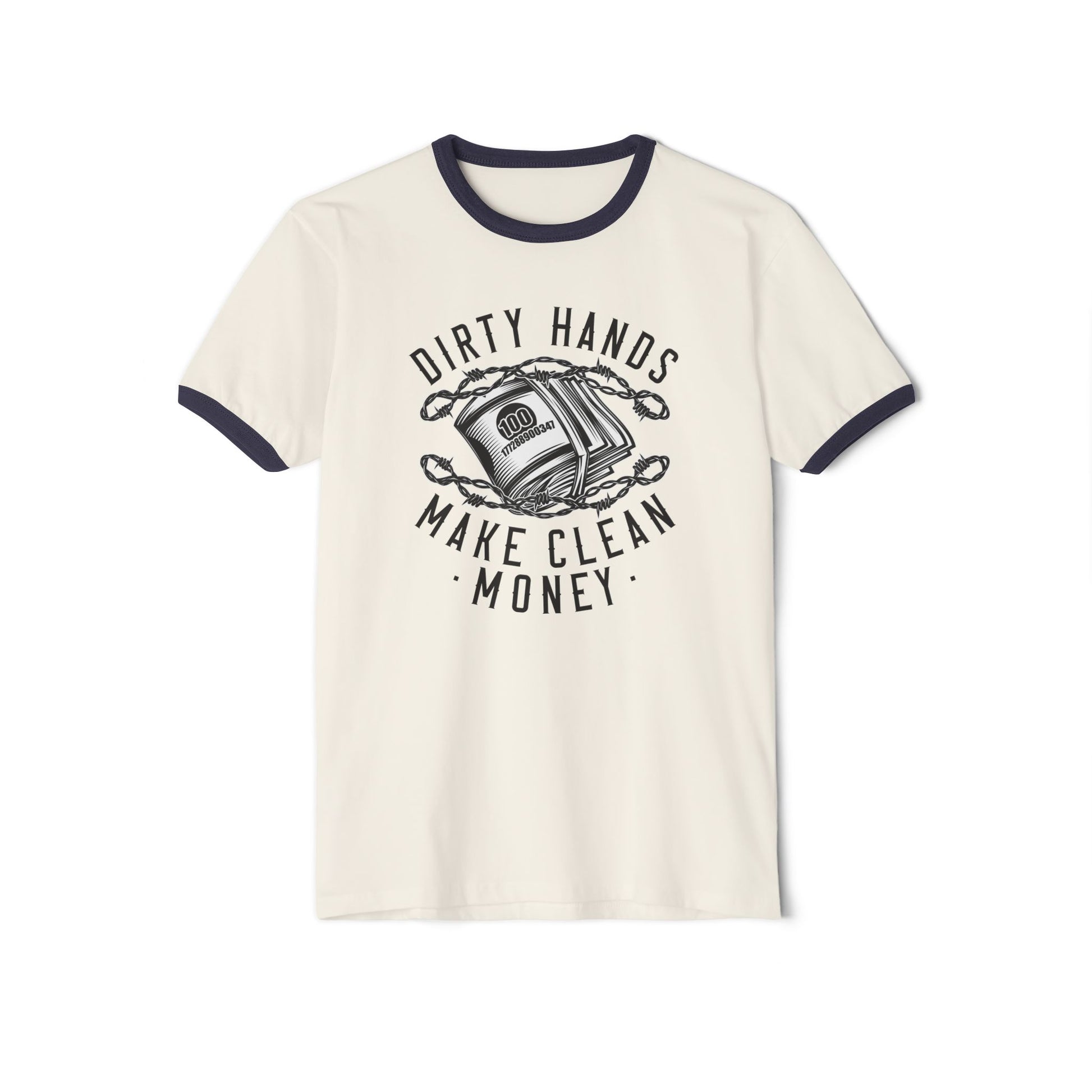 Dirty Hands, Clean Money Unisex Ringer T-Shirt | Casual Tee for Workers, Gifts for DIY Lovers, Fun Apparel for Crafting, Everyday Wear
