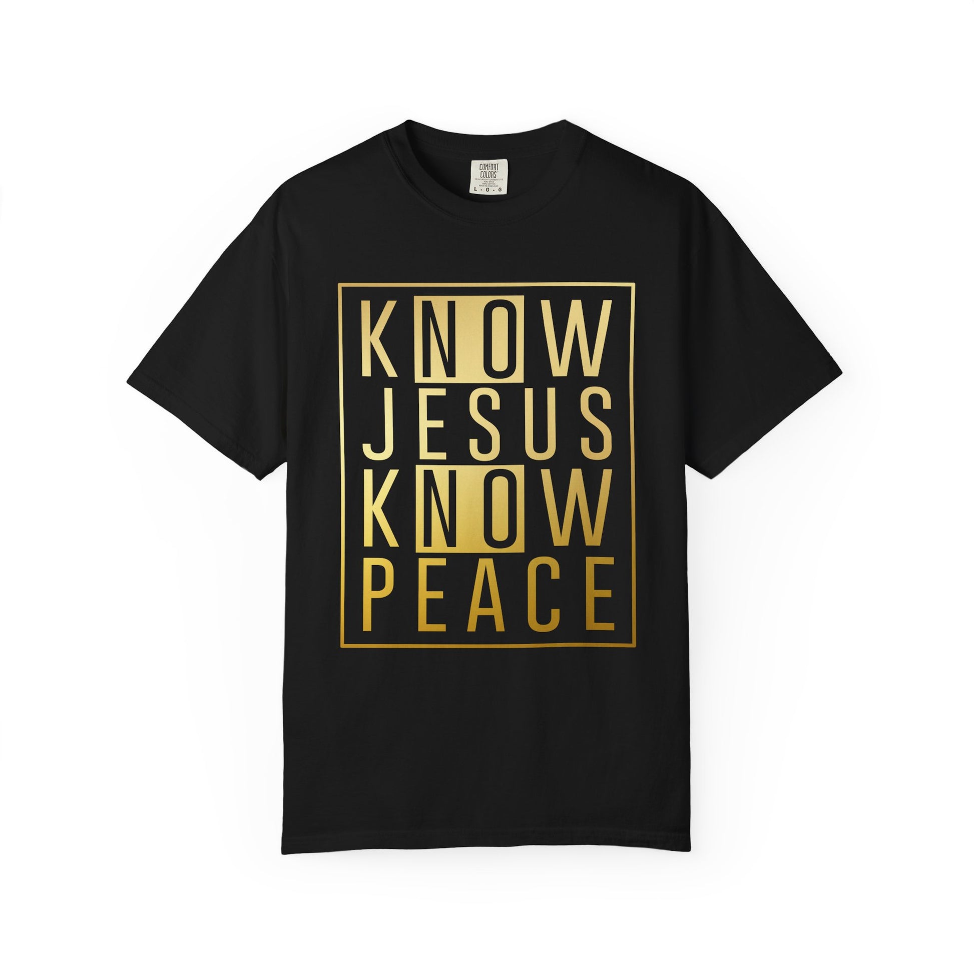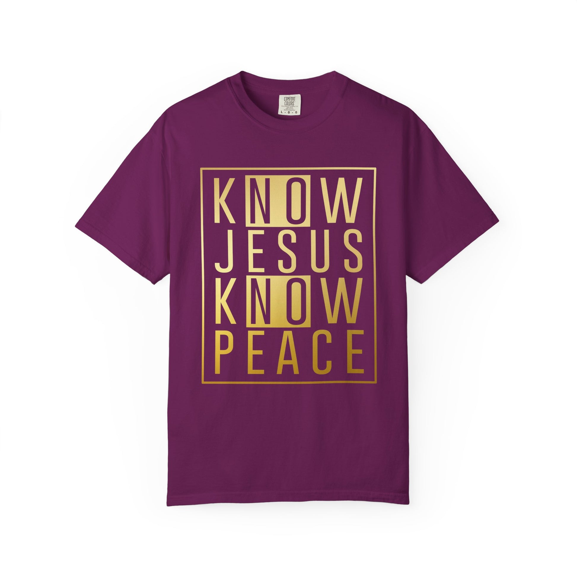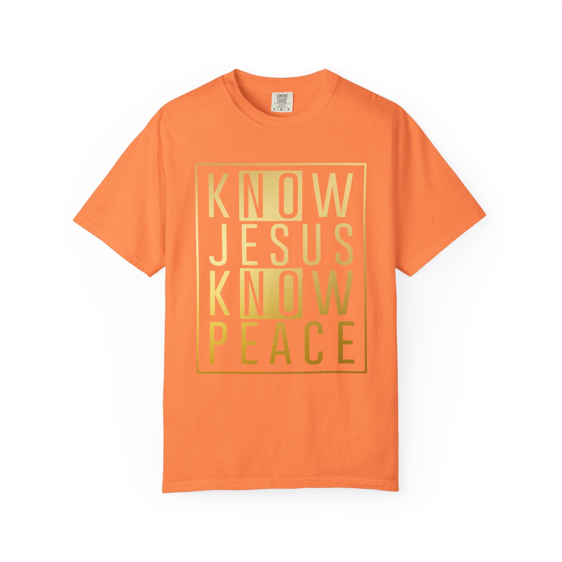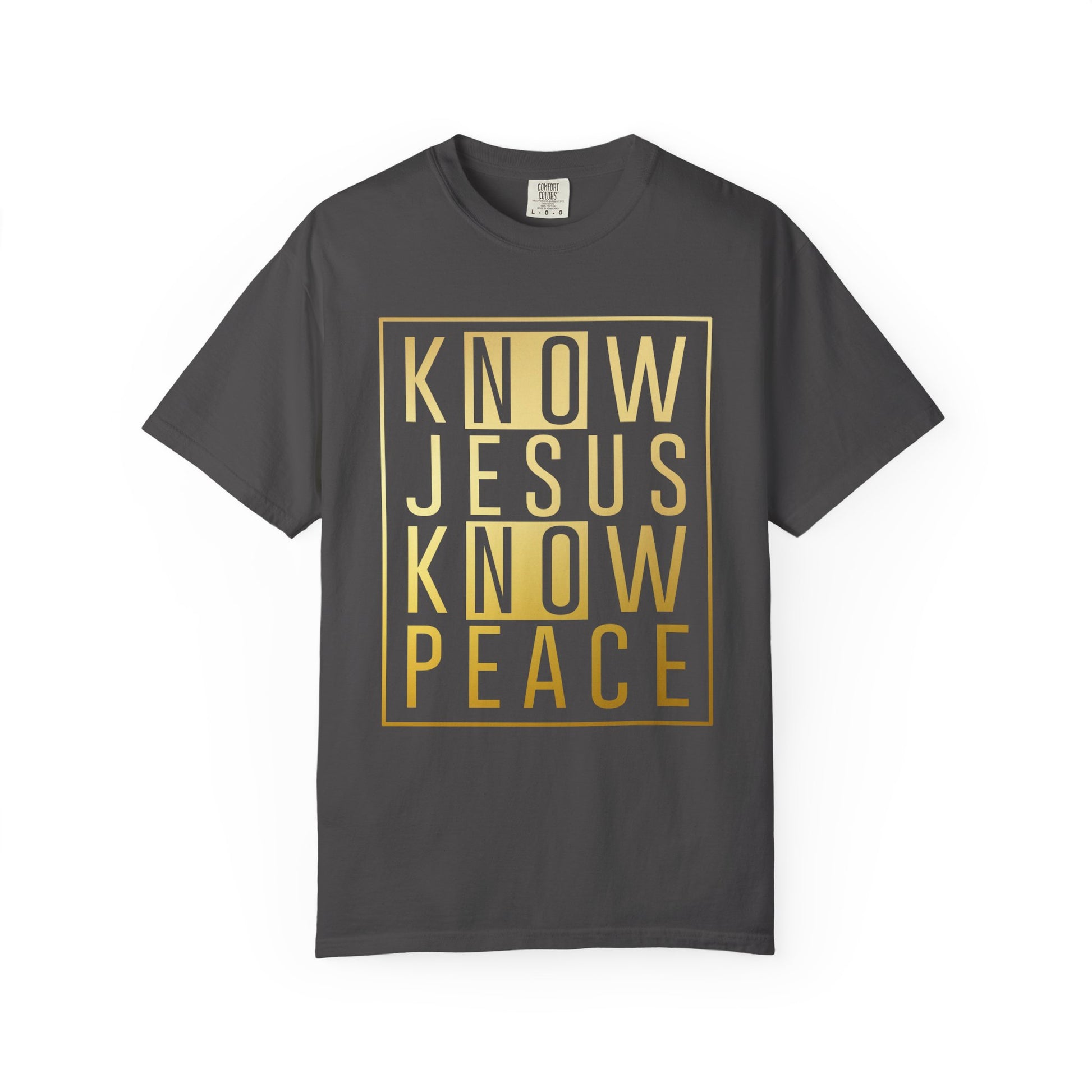 Know Jesus, Know Peace Unisex Garment-Dyed T-shirt | Inspirational Apparel for Faith, Church Events, Gifts, Casual Wear, Summer Outfits