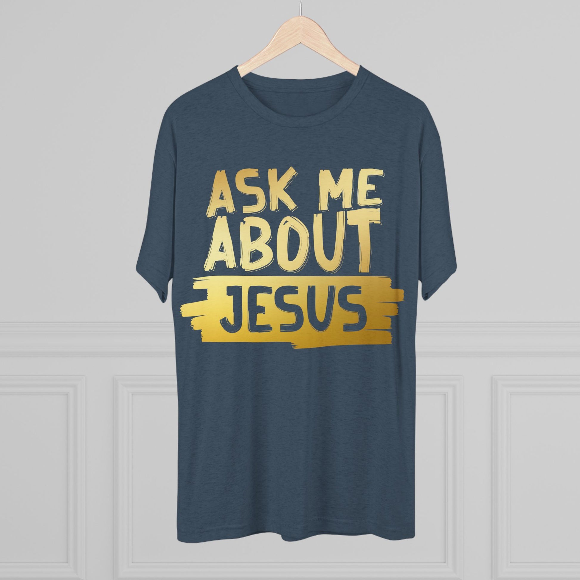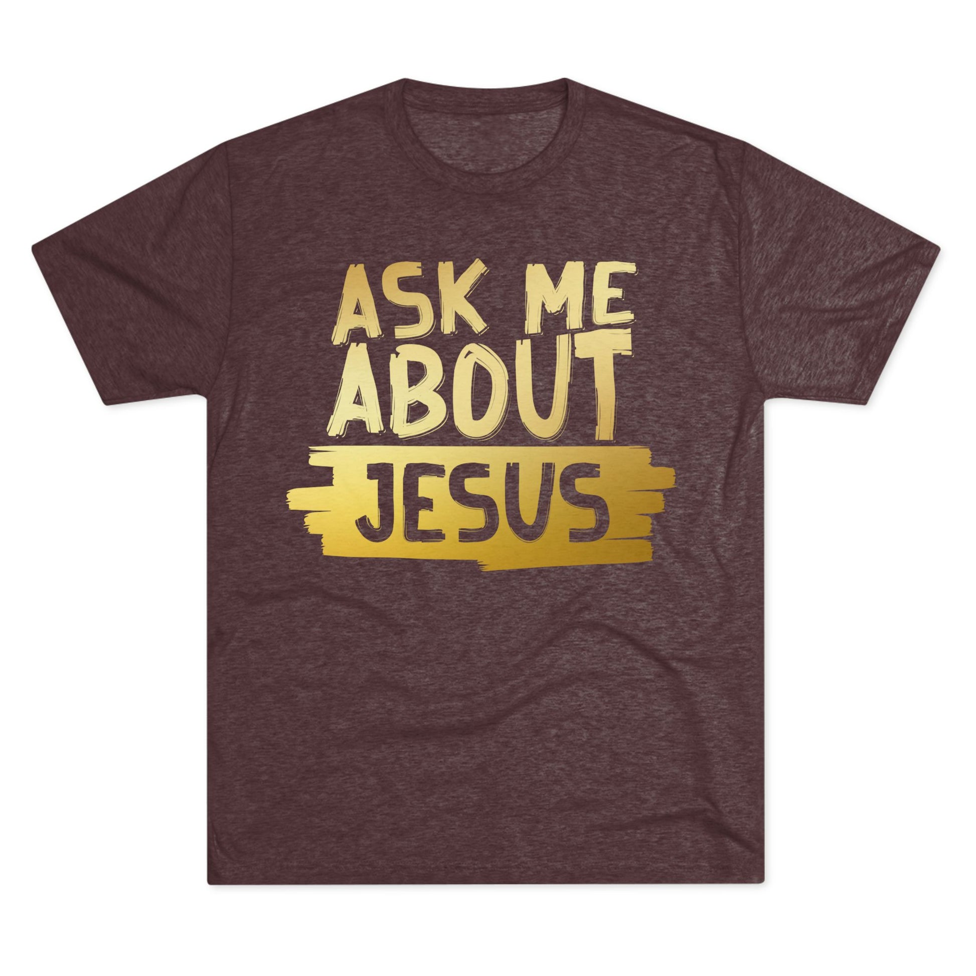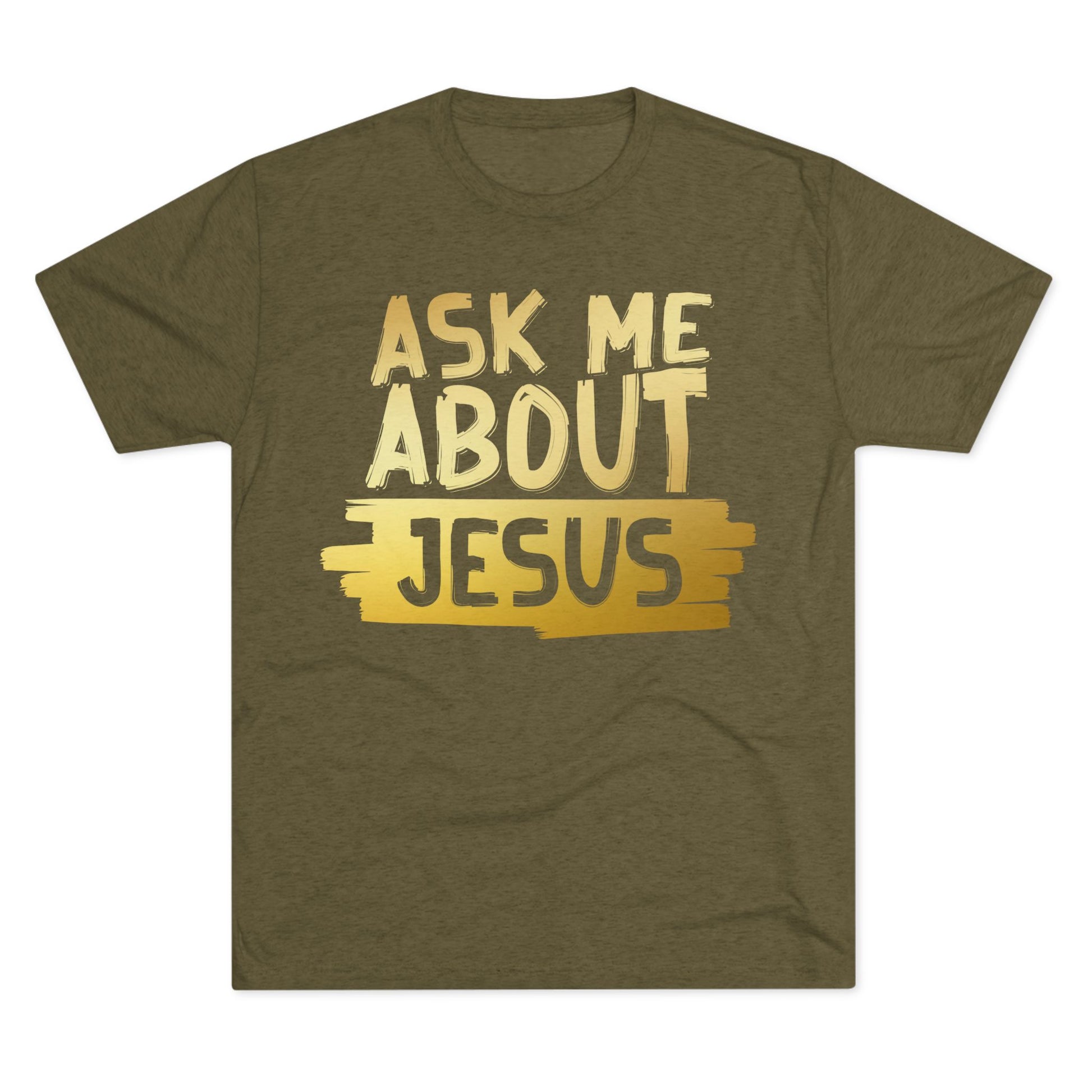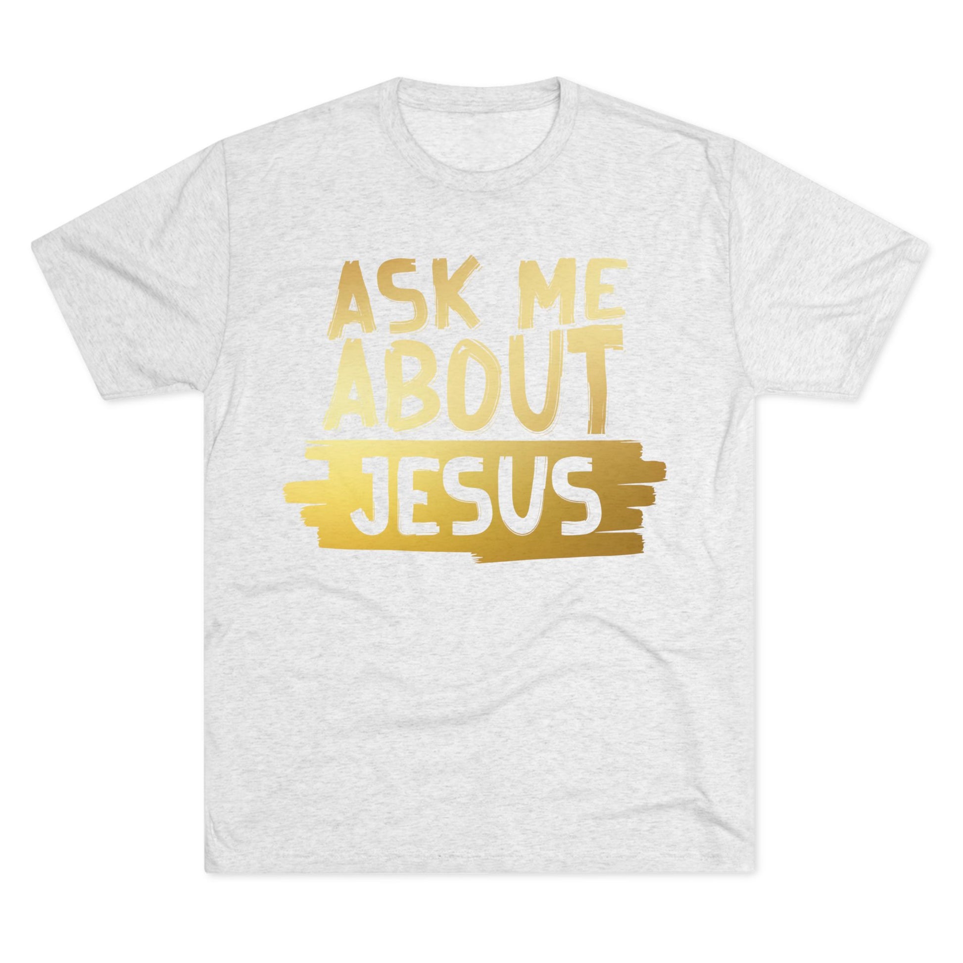 Unisex Tri-Blend Crew Tee, Faith-Inspired Gold Tee, Christian T-Shirt, Inspirational Gift, Casual Everyday Wear, Ask Me About Jesus Shirt